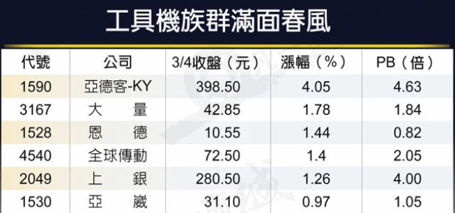 中美貿易談判樂觀,可望在3月底習川會簽成協議,為周一(4日)登場的「2019年臺北國際工具機展」增添大利多,亞德客、上銀等相關概念股滿面春風,搭配工具機搶攻自動化概念商機發酵,買氣逐步歸隊,全年營運有望先蹲后跳。